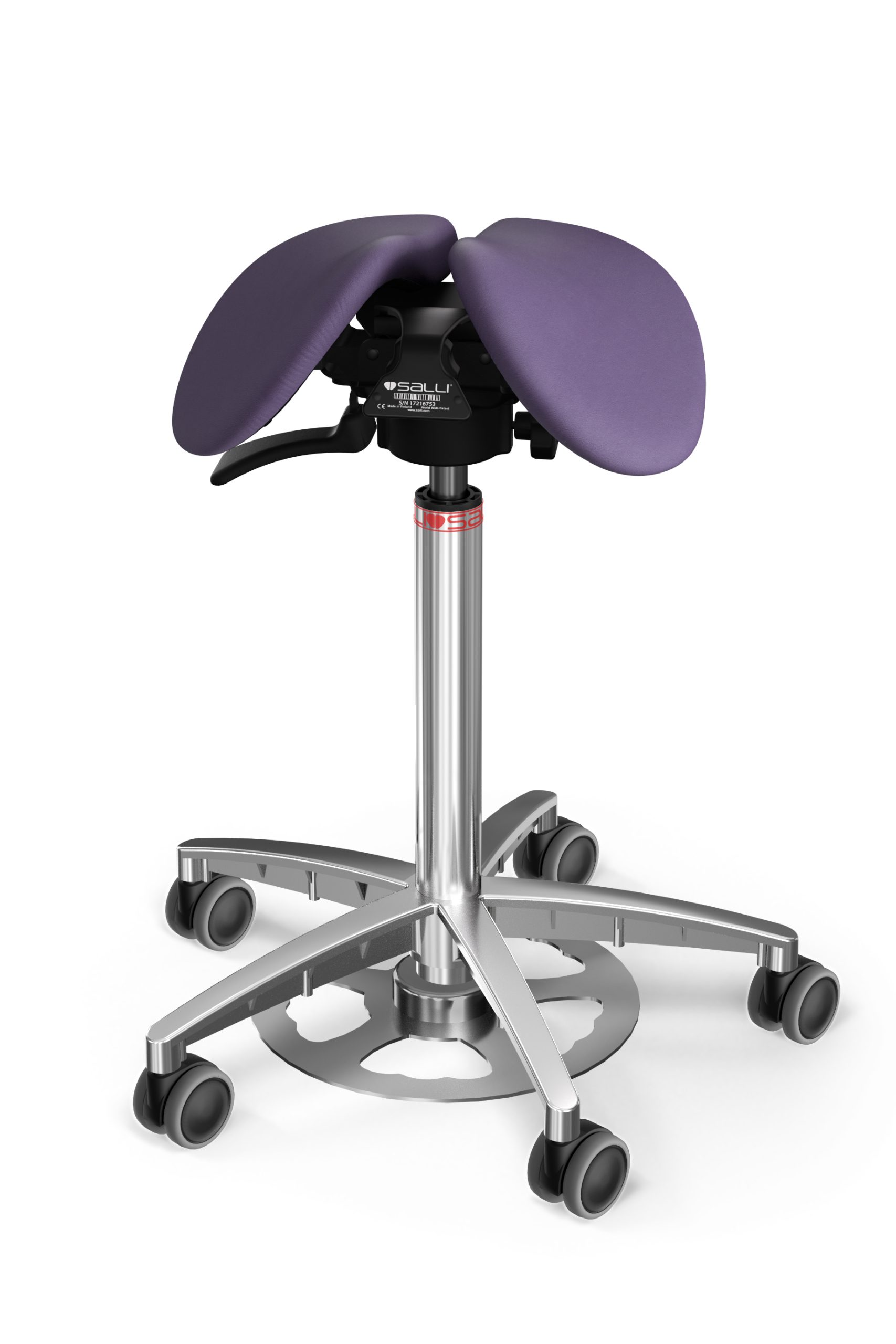 Jeg har ganske korte bein, men Salli-stolen kan senkes lavt nok. Det er godt å sitte på en Salli, sittestillingen min forblir god og det er enkelt å forflytte seg. Det er den beste arbeidsstolen jeg noensinne har sittet på.