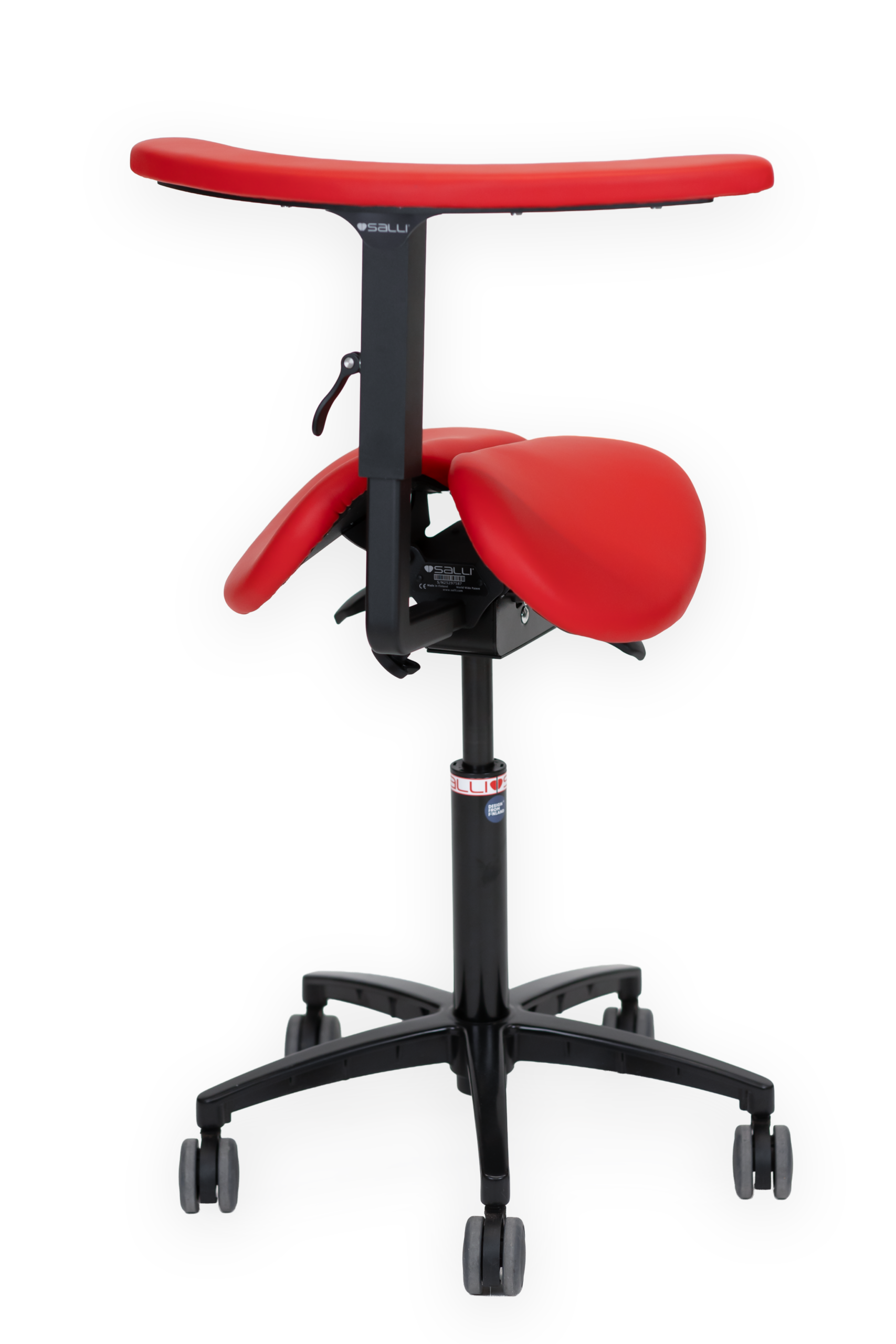Istumalla sellaisella satulatuolilla kuin Salli vältän ongelmat lapojen alueella ja alaselässä eikä niskaan tule buffalokyhmyä. Tunnen löytäväni hyvän asennon tällä tavoin muotoillulla tuolilla. Koska istuin on ergonomisesti kaksiosainen, lantiota voi kääntää pystyasentoon kuten seistessä, jolloin selän luonnolliset kaaret säilyvät ja pää on sivusta katsoen samalla linjalla kuin lantio ja kantapää. Toisin sanoen juuri niin kuin ergonomisella työtuolilla pitäisikin olla.